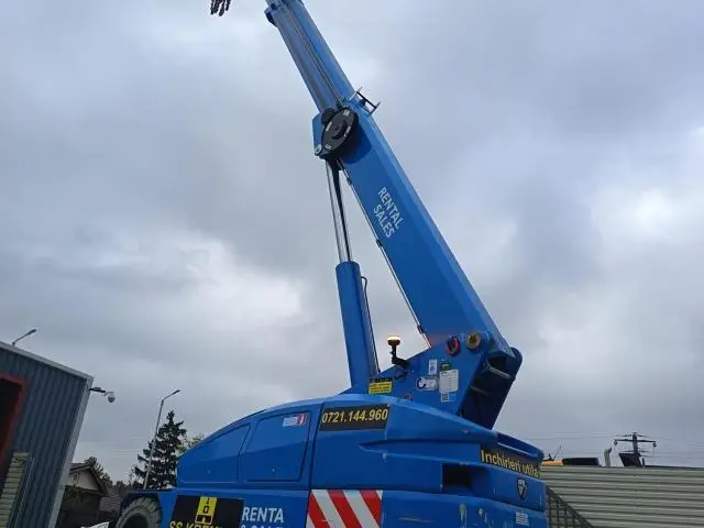 Oferim spre închiriere mini-macara Valla cu capacitate de ridicare de 8 tone, ideală pentru lucrări în spații restrânse, montaj utilaje ușoare și activități care necesită precizie și mobilitate.