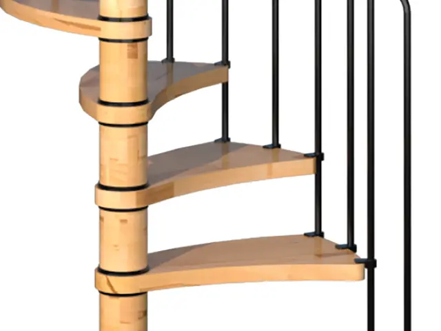 Scara LARISSA rezolva ecuatia imposibila: acces elegant la etaj fara sa sacrifici livingul. Mana curenta calda din fag si spirala fluida transforma urcarea intr-un gest natural.