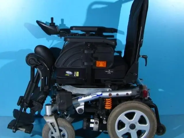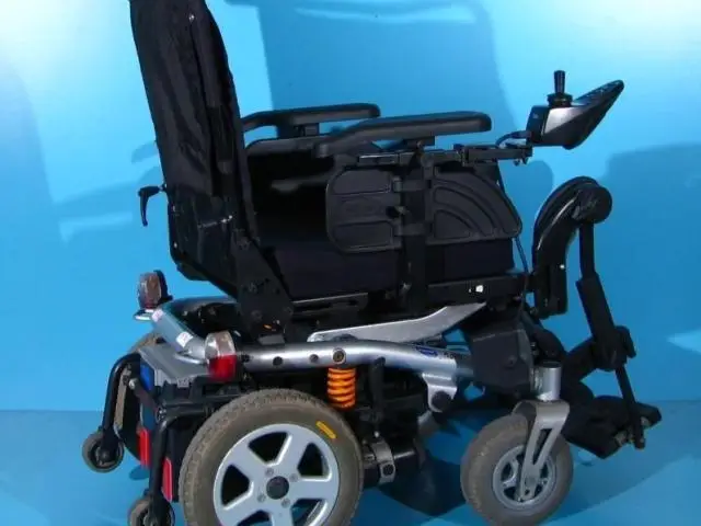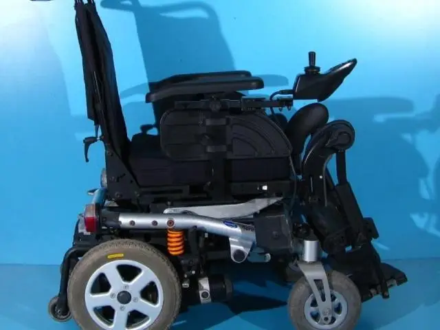 Scaun cu rotile electric, second hand, cu comandă pe joystick, destinat persoanelor cu handicap și celor cu deficiențe locomotorii. Caruciorul electric este proiectat pentru a oferi siguranță, stabilitate și confort, fiind dotat cu sistem de iluminare și semnalizare, ceea ce îi permite utilizarea pe drumurile publice.