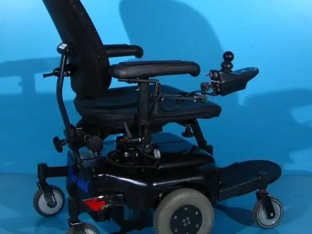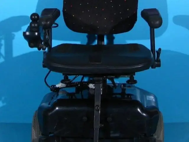 Scaun cu rotile electric second hand cu comanda pe joystick destinat persoanelor cu handicap si persoanelor cu deficiente locomotorii.