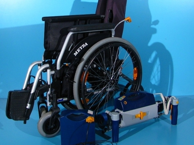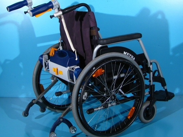 Meyra este denumirea scaunului cu rotile pe care este instalat acest dispozitiv.