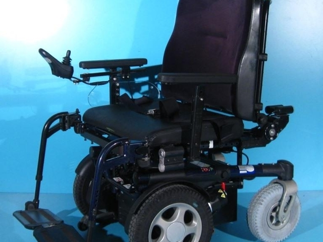 Carucior electric second hand destinat persoanelor cu deficiente locomotorii si persoanelor cu handicap.