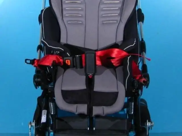 Scaunul este prevazut cu suporti pentru cap reglabili, centura de siguranta, suport pelvian, si suporti pentru bazin reglabili.