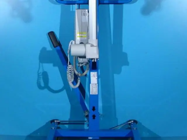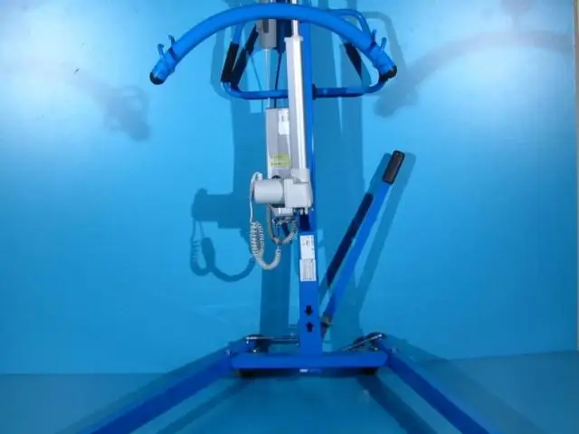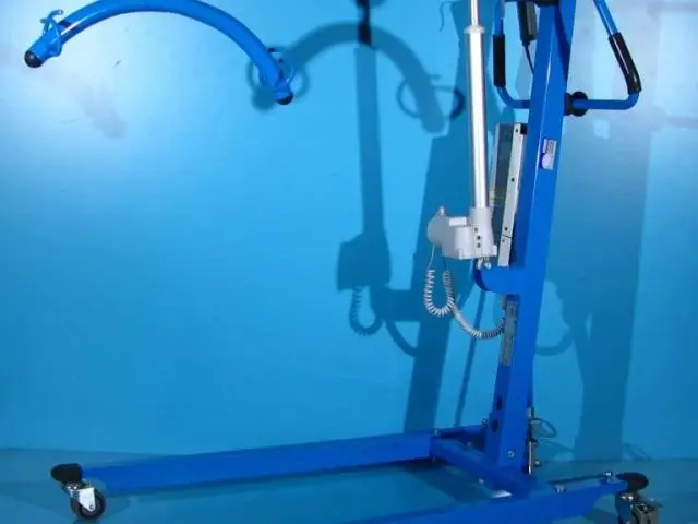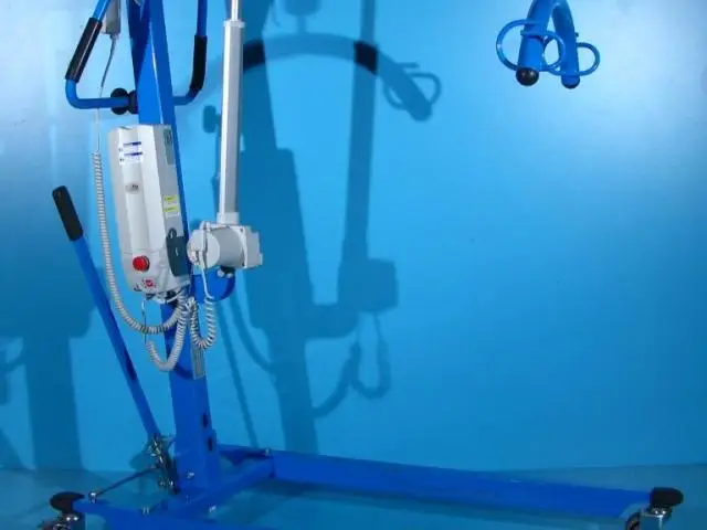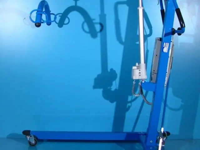 Acest elevator pentru pacienti trebuie operat de catre un asistent pentru ridicare, coborare si deplasare.