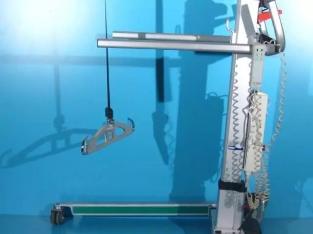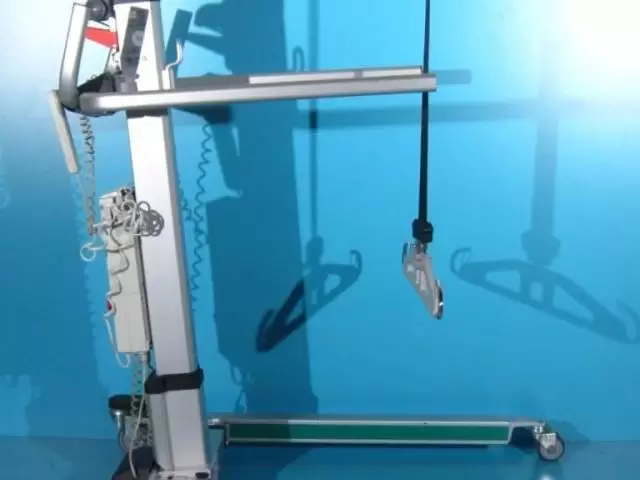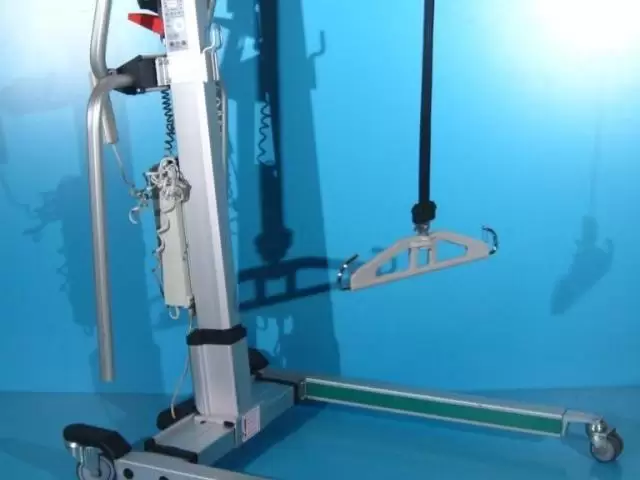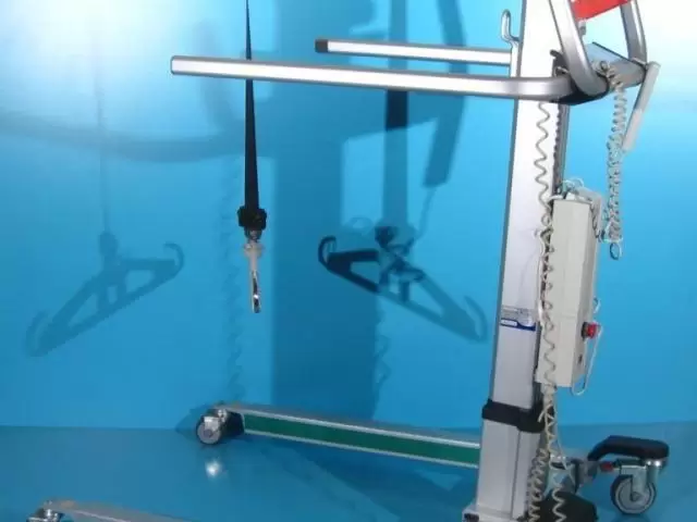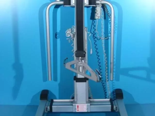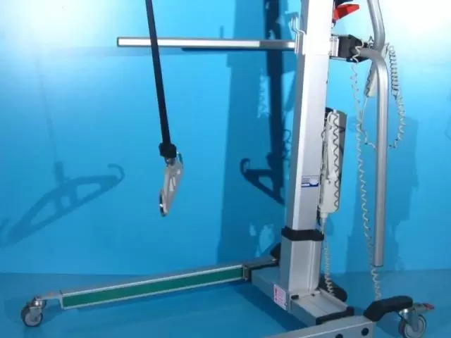 Acest elevator pentru pacienti trebuie operat de catre un asistent pentru ridicare, coborare si deplasare.