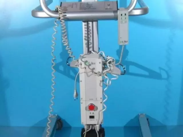 Acest dispozitiv de ridicat si transportat pacienti este dotat cu telecomanda care actioneaza bratul de ridicare/coborare si distantarea picioarelor.