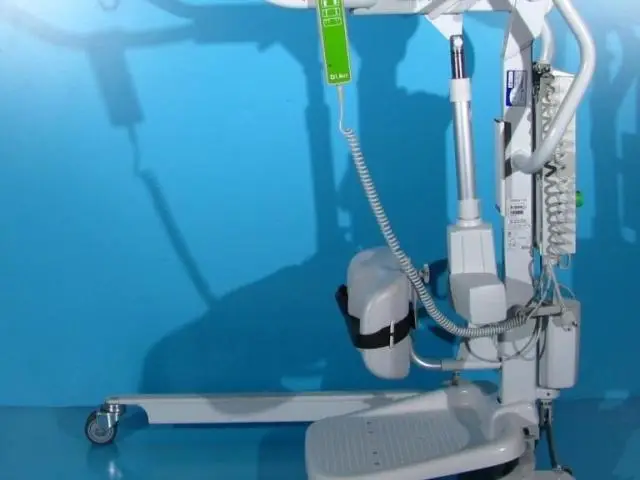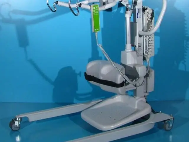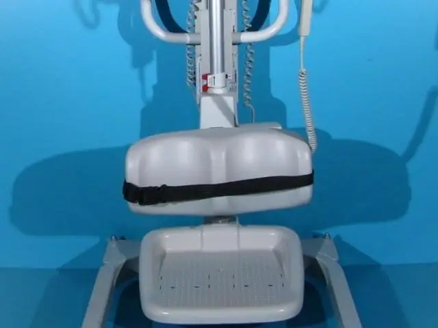 Acest elevator pentru pacienti trebuie operat de catre un asistent pentru ridicare, coborare si deplasare.