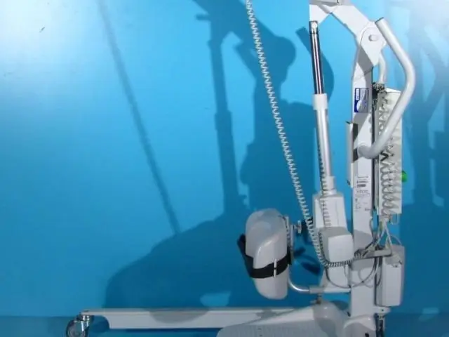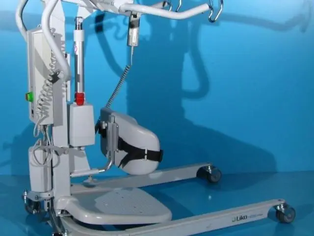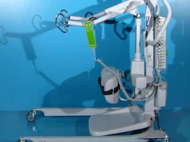 Acest dispozitiv de ridicat si transportat pacienti este dotat cu telecomanda care actioneaza bratul de ridicare.