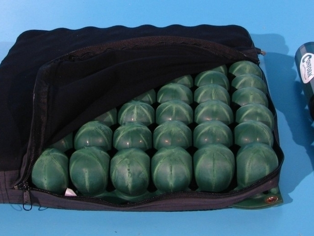 Produs ortopedic prevazut cu celule pe aer care optimizeaza pozitia sezutului, permite aerului sa circule pe dedesubtul pacientului, prevenind astfel aparitia escarelor.