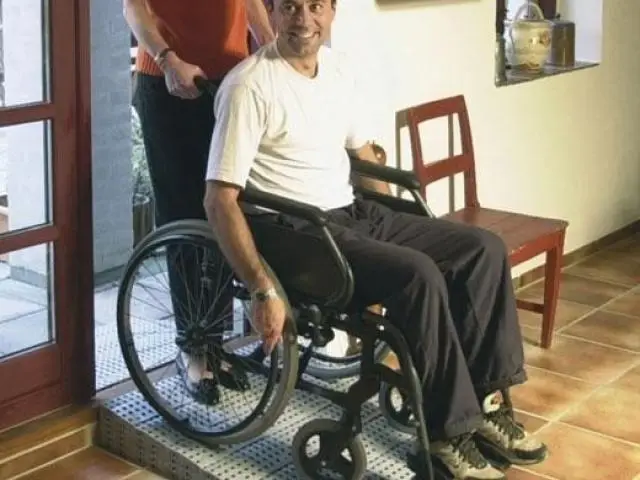 Rampa din plastic second hand - permite accesul in siguranta a unei persoane imobilizata in scaunul cu rotile.