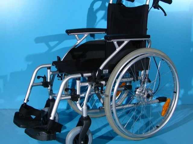 Scaunul rulant are schelet din aluminiu, vopsit epoxy.