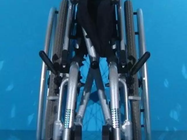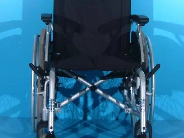 Scaunul rulant are schelet din aluminiu, vopsit epoxy.