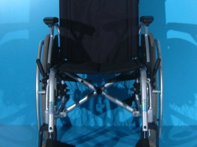 Scaunul rulant are schelet din aluminiu, vopsit epoxy.