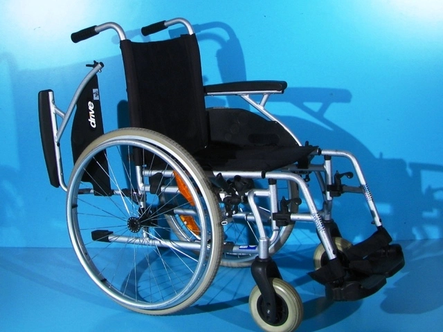 Scaunul rulant are schelet metalic si parti din aluminiu, vopsit epoxy.