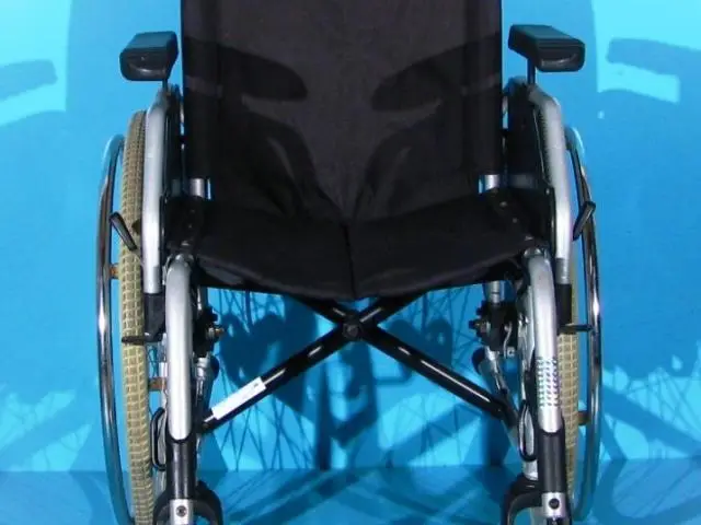 Carucior handicap second-hand, pliabil, cu detașarea rapidă a roților, destinat persoanelor cu mobilitate redusă.