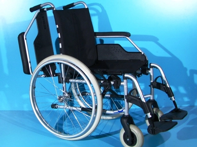 Scaunul rulant are schelet metalic si parti din aluminiu, vopsit epoxy.
