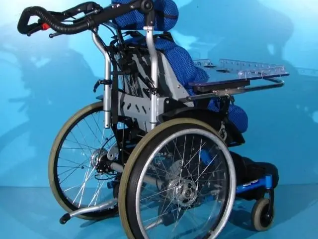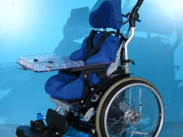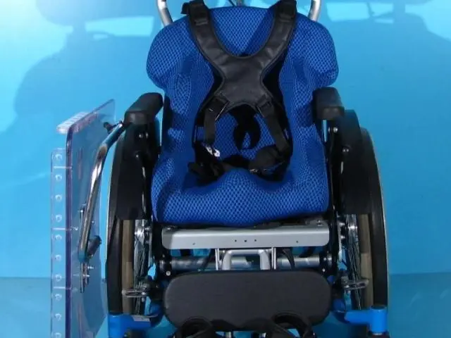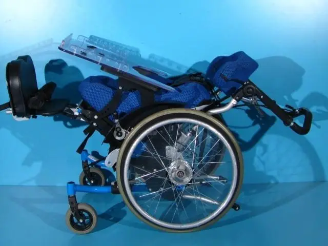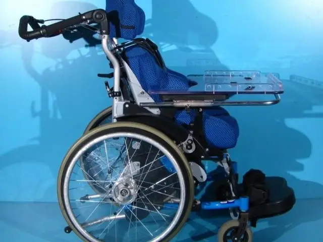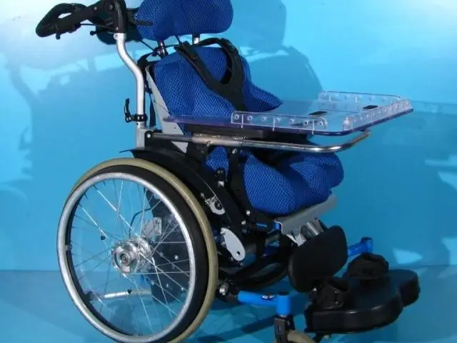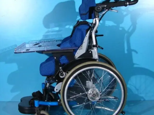 Carucior pentru copii cu handicap second hand nepliabil cu detasare rapida a rotilor, destinat deplasarii persoanelor cu handicap locomotor, si cu mobilitate scazuta.