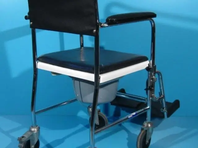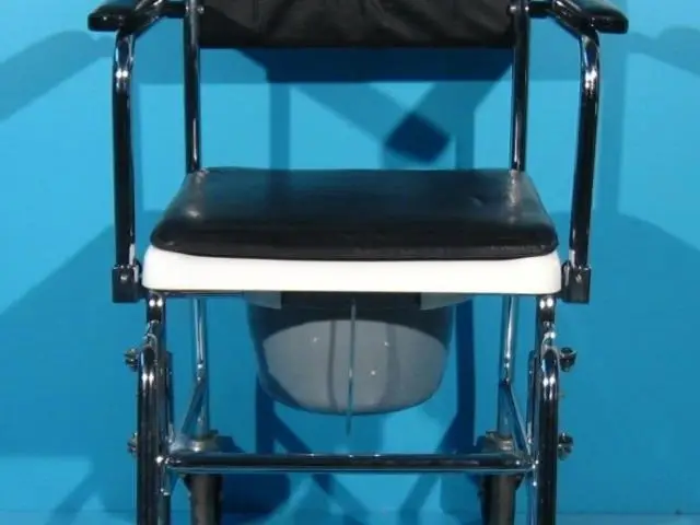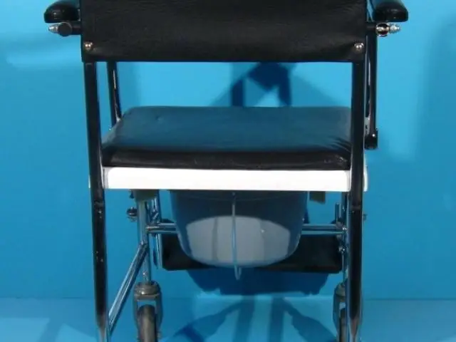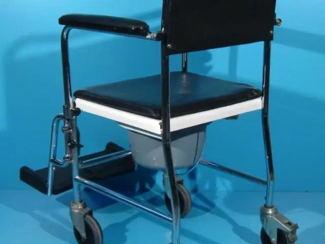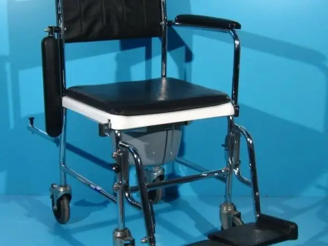 Scaun handicap cu wc (toaleta), cu rotile destinat persoanelor cu nevoi speciale.