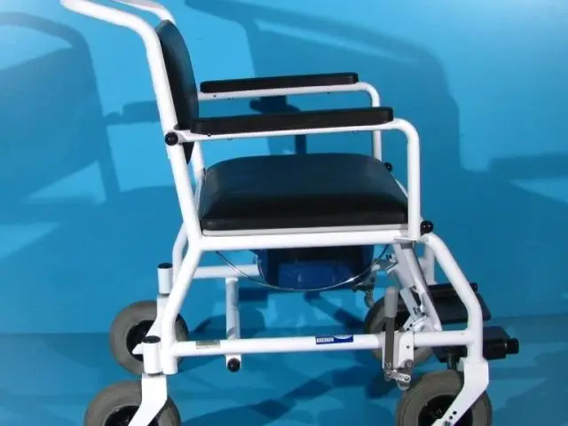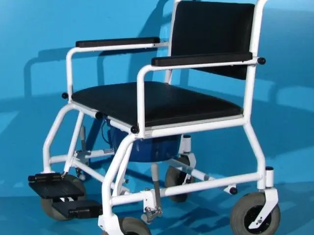 Acest carucior cu wc poate fi folosit in locuinta si ca scaun cu rotile.