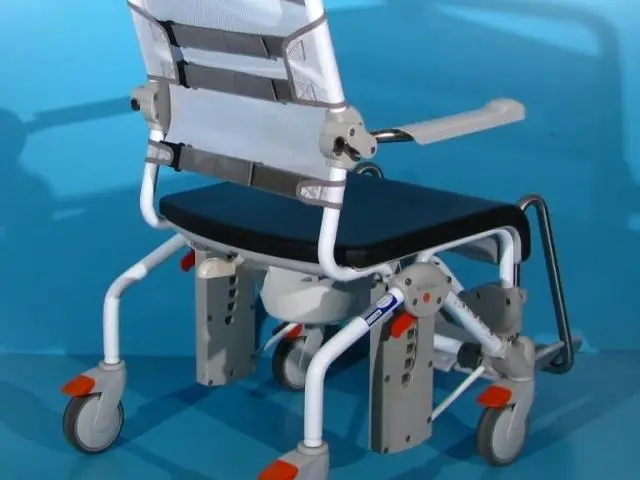 Scaun handicap pentru wc (toaleta) si dus, cu rotile destinat persoanelor cu nevoi speciale.