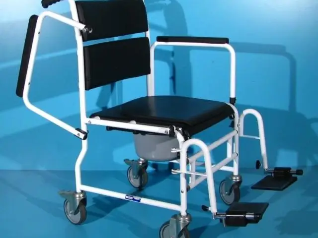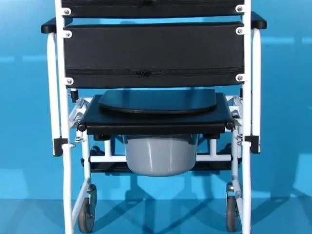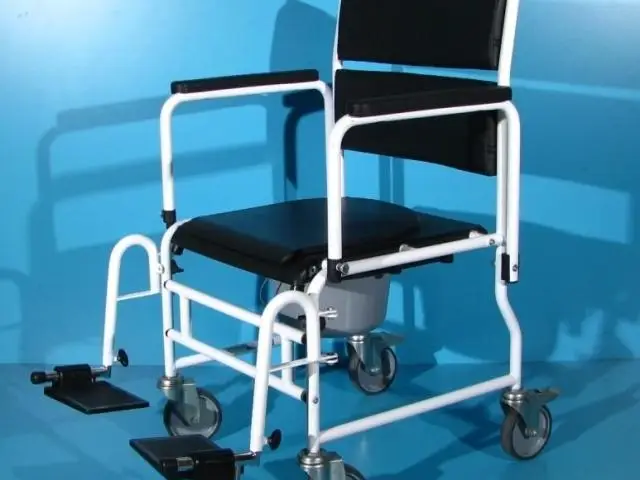 Scaun handicap cu wc (toaleta), cu rotile destinat persoanelor cu nevoi speciale.