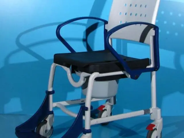 Acest carucior cu wc poate fi folosit in locuinta si ca scaun cu rotile.