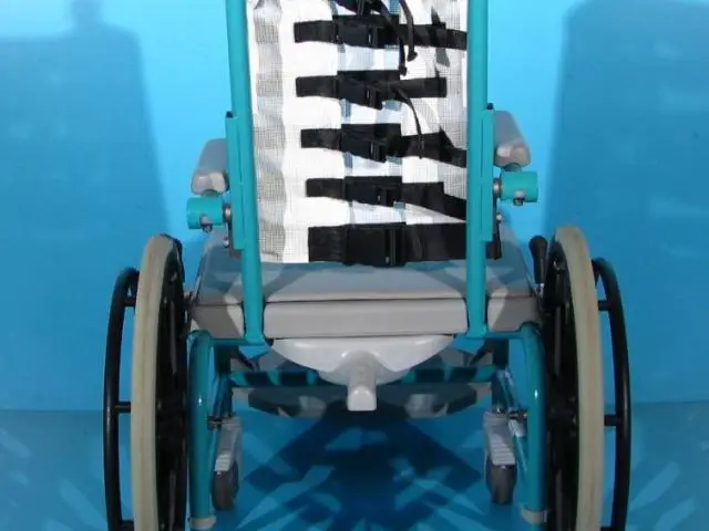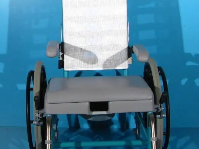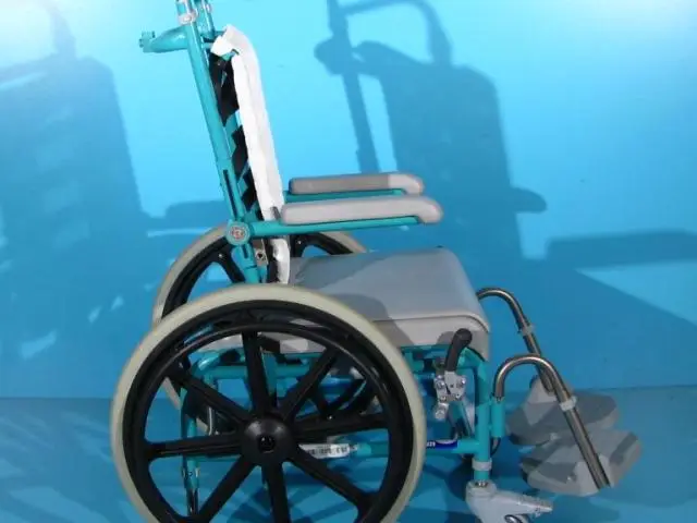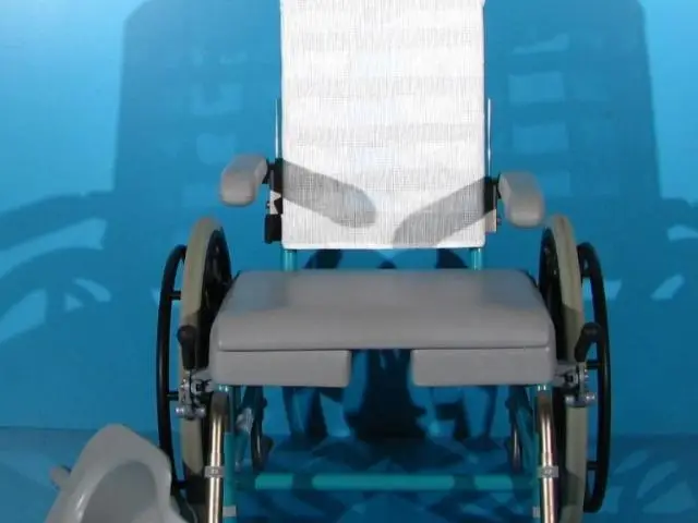 Scaun handicap cu wc (toaleta), cu rotile destinat persoanelor cu nevoi speciale.