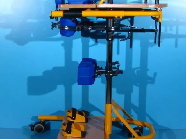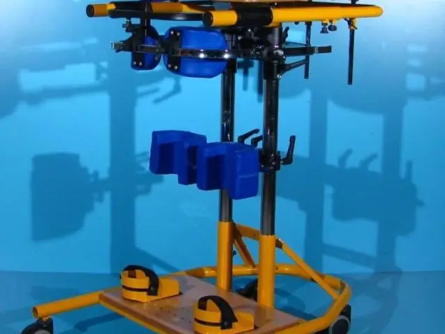 Suport sustinere bazin reglabil stanga/dreapta, fata/spate si pe inaltime. Suportul de sustinere bazin permite asezarea persoanei in verticalizator apoi blocarea sa printr-o siguranta.