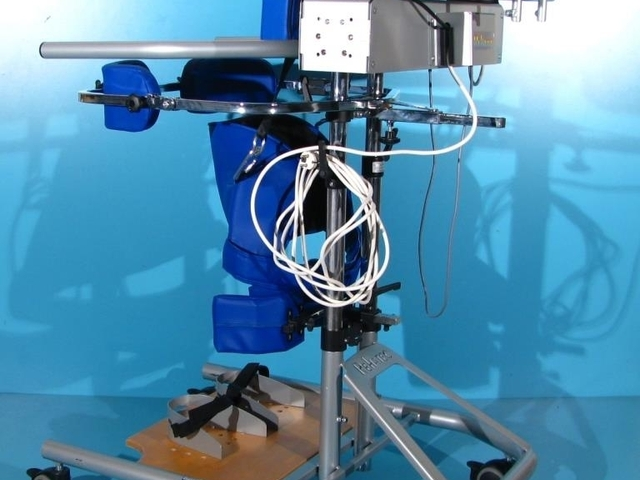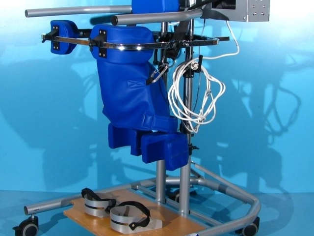Cu ajutorul verticalizatorului, pacientul poate sta in picioare in siguranta, avand stabilitate si independenta.