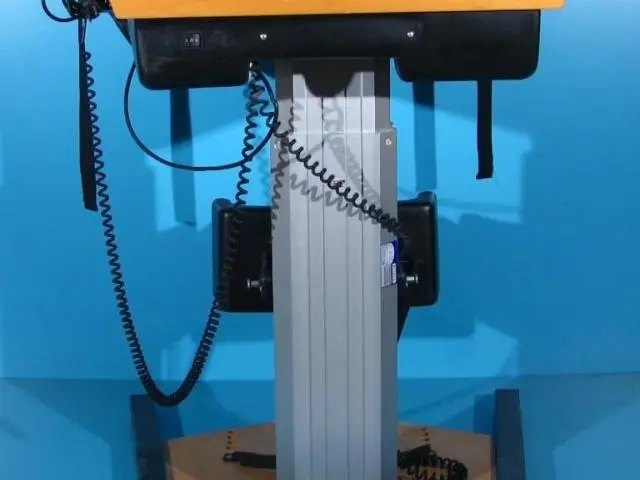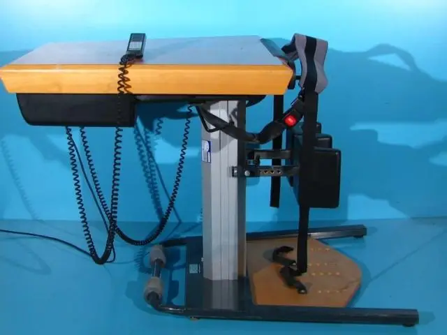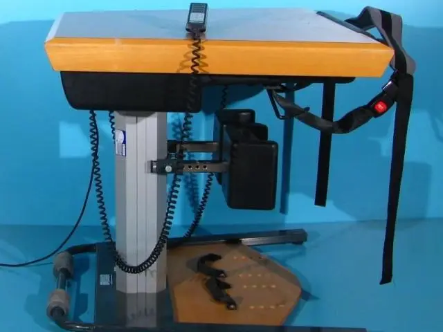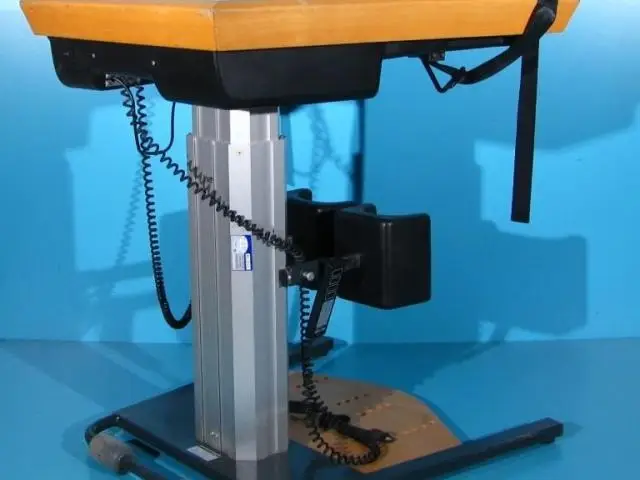 Functiile electrice actionate din telecomanda pemit: deplasarea mesei fata spate 40 cm, ridicarea asezarea pacientului pe scaun (deplasarea mesei in fata in acelasi timp cu verticalizarea).