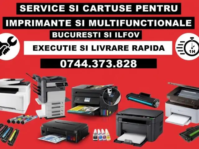 Reparatii si cartuse pentru imprimante si copiatoare in Bucuresti si in Ilfov ! Oferim intervenții rapide și profesionale pentru o gamă largă de modele: imprimante laser, cu jet de cerneală, CISS, copiatoare si multifunctionale. ⏱️ Intervenție la sediul societatii dvs în maximum 1 oră de la confirmarea si acceptarea comenzii cu datele pentru facturare, cu li...