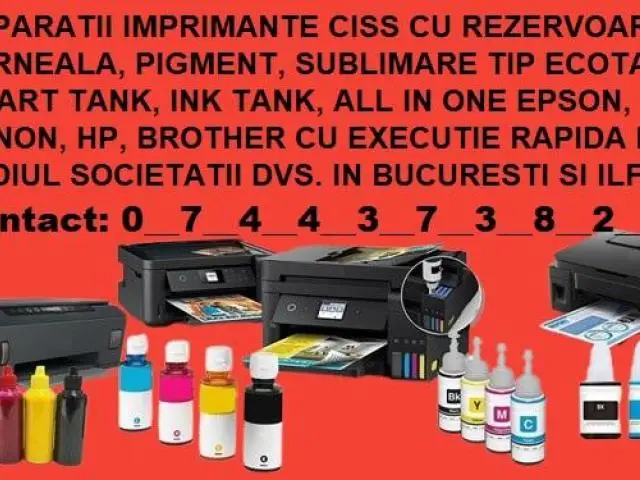 Reparații imprimante firme – cu rezervoare cerneala ecotank in Bucuresti Ilfov