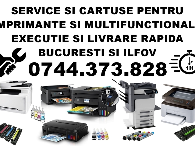 Serviciu de reparatii imprimante pentru o gama larga de modele de imprimante laser, copiatoare si imprimante cu rezervoare cu cerneala in Bucuresti si Ilfov in maxim 2 ore la sediul societatii dvs. Exclusiv B2B.Preturi de la 75 lei in functie de tipul imprimantei, starea tehnica, complexitatea reparatiei imprimantei iar in cazul cartuselor in functie de imprimanta, tip, capacitate de printare a cartusului.Contact: 0__7__4__4__3__7__3__8__2__8