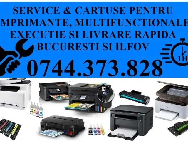 Service on-call pentru imprimante si copiatoare la sediu societatii dvs. – intervenții rapide în București și Ilfov. Executie rapida cu livrare gratuita in max. 2 ore la sediul societatii dvs. in Bucuresti si Ilfov in baza comenzii confirmate si acceptate, cu datele pentru facturare.Exclusiv B2B.Preturi de la 75 lei in functie de tipul echipamentului, starea tehnica, complexitatea interventiei, iar in cazul consumabilelor in functie de brand, capacitate printare si modalitate de ambalare.Contact: 0__7__4__4__3__7__3__8__2__8