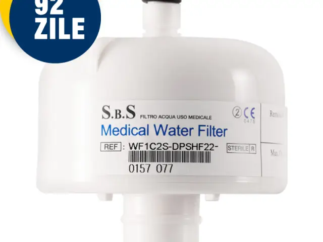Filtru final / capsulă microfiltrantă pentru apă sterila 92 de zile fără autoclavare: Această capsulă microfiltrantă terminală este o soluție de lungă durată care garantează apă sterilă la punctul de utilizare. Filtrul elimină eficient bacteriile, fungii și alți contaminanți, menținând sterilitatea apei timp de până la 92 de zile. Această durată extinsă optimizează logistica și elimină necesitatea autoclavării frecvente, fiind esențială pentru menținerea celor mai înalte standarde de igienă medicală.