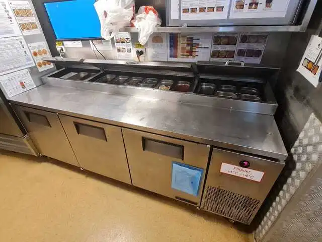 Masa rece cu 3 usi, cu roti si cu spatiu rece pentru GN-uri: