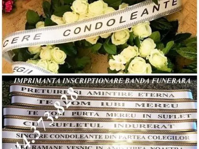 Imprimanta lente coroana funerara.Un sistem intuitiv de scriere a mesajelor de pe lentele coroanelor de flori. Dispozitivul portabil de imprimare poate fi conectat la orice computer sau laptop. Imprimarea se realizeaza pe panglici de poliamida sau polipropilena cu multiple posibilitati grafice,comparativ cu sistemul de scris cu markerul sau sablonul. Livrare rapida prin curier rapid, la sediul societatii dvs. in baza comenzii cu datele pentru facturare. Produs nou.Exclusiv B2B. Pret 1996 lei Contact: 0744.373.828