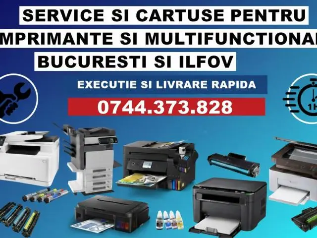 • Reparații și service: Pentru imprimante, multifuncționale, imprimante CISS, copiatoare în Sector 2 pentru brandurile: HP, Canon, Brother, Epson, Xerox, Samsung, Lexmark, Kyocera, Konica Minolta.