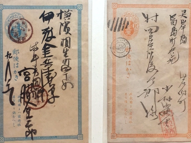 Doua carti postale japoneze emise in perioada 1871-1880, circulate, astfel: